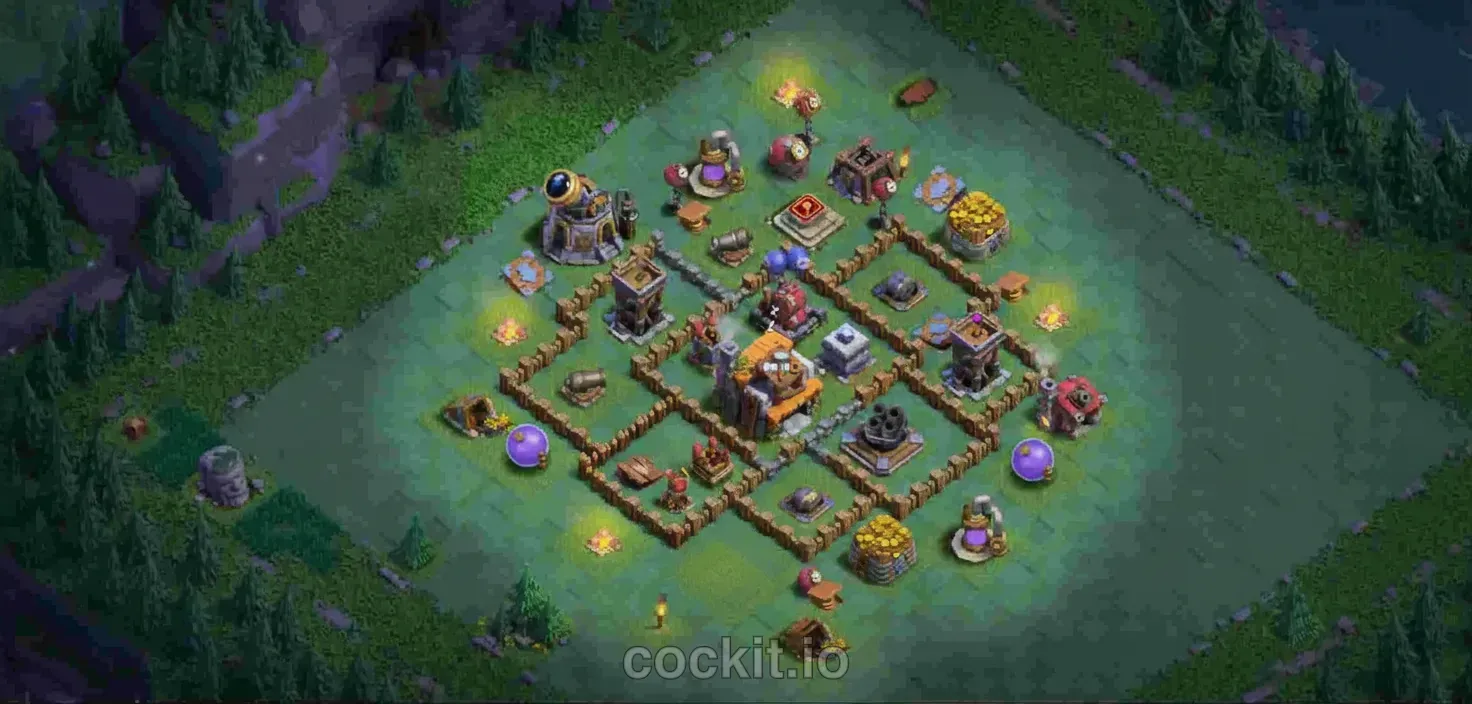 Trophy#25BH5 Trophy layouts are designed to counter the current BH5 attack meta. This base targets level 5 play and leans toward Trophy strategy, balancing defensive priorities with resource protection.