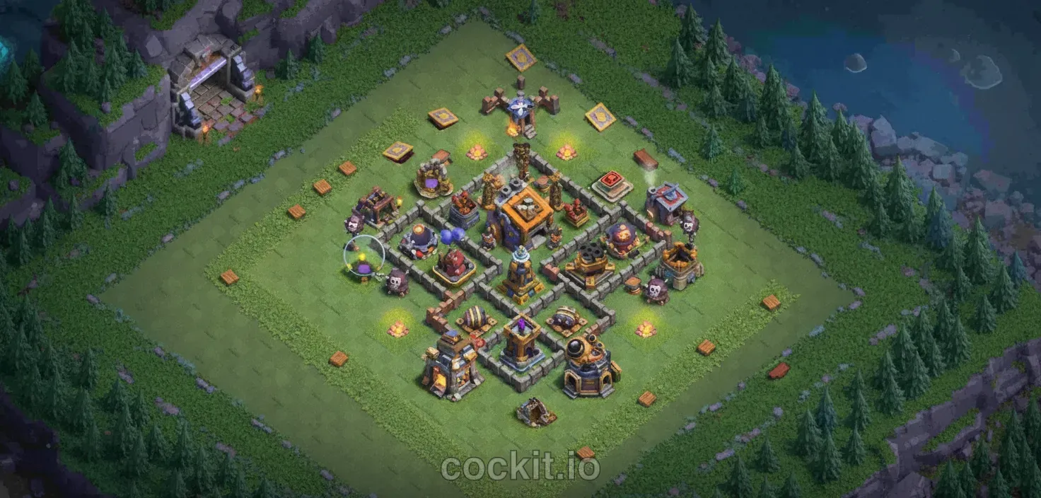 Trophy#30BH9 Trophy layouts are designed to counter the current BH9 attack meta. This base targets level 9 play and leans toward Trophy strategy, balancing defensive priorities with resource protection.