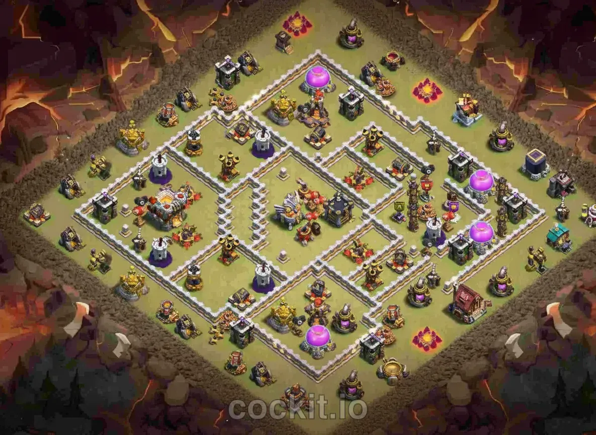 War bases at TH11 are designed to deny 3-star attacks during regular wars and Clan War Leagues. They prioritize splash damage positioning, heavy wall compartments around the Town Hall, and anti-queen walk layouts that absorb hero charges.