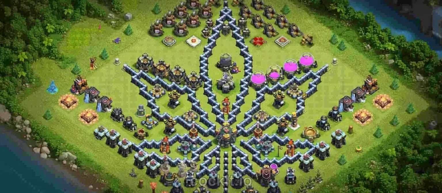 War#136TH13 War layouts are designed to counter the current TH13 attack meta. This base targets level 13 play and leans toward War strategy, balancing defensive priorities with resource protection.