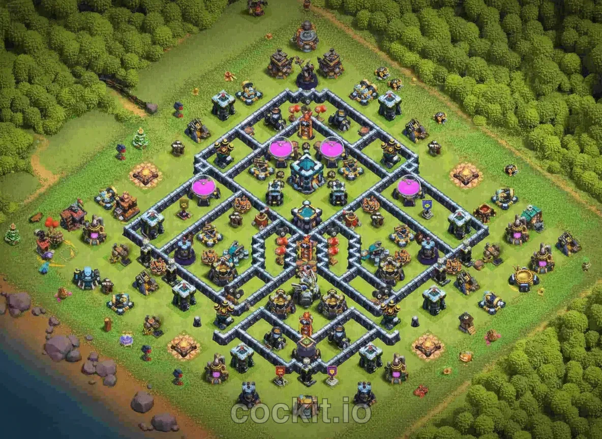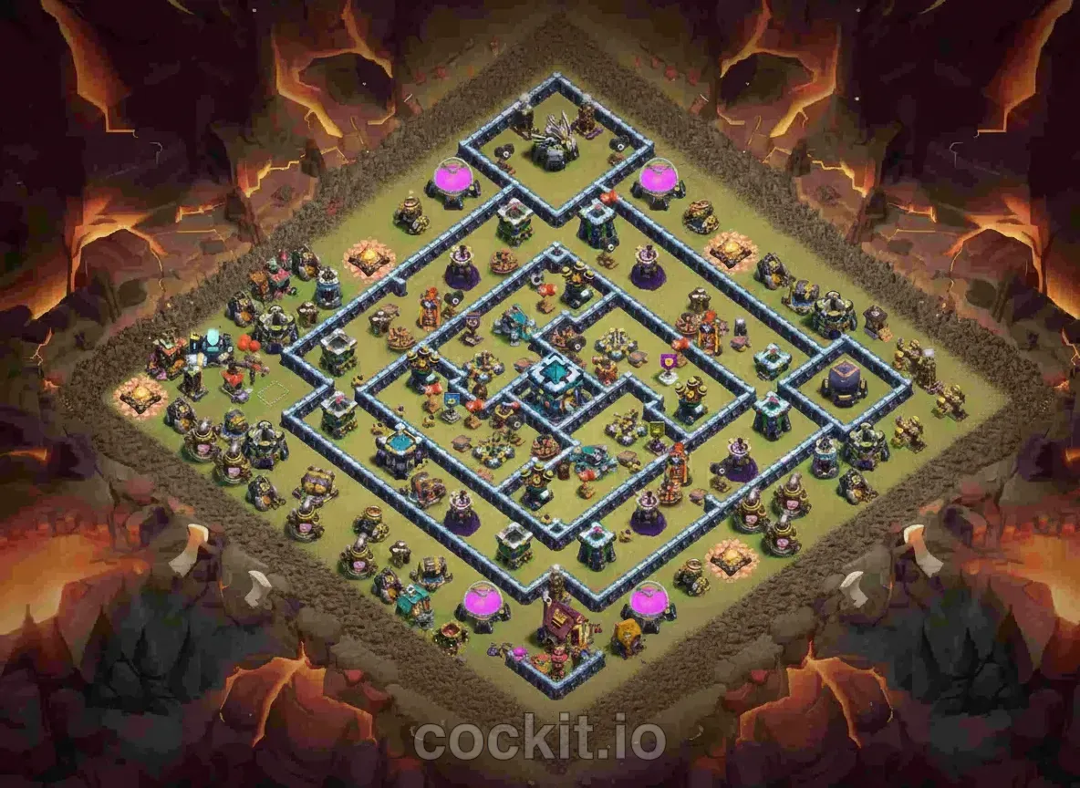 TH13 is one of the most scrutinized Town Hall tiers in the current meta. A good TH13 base layout must cover air, ground, spam and hero-cycle attacks while protecting the storages that matter most at your progression stage. The list below ranks the community's top TH13 bases by rating and copy count.