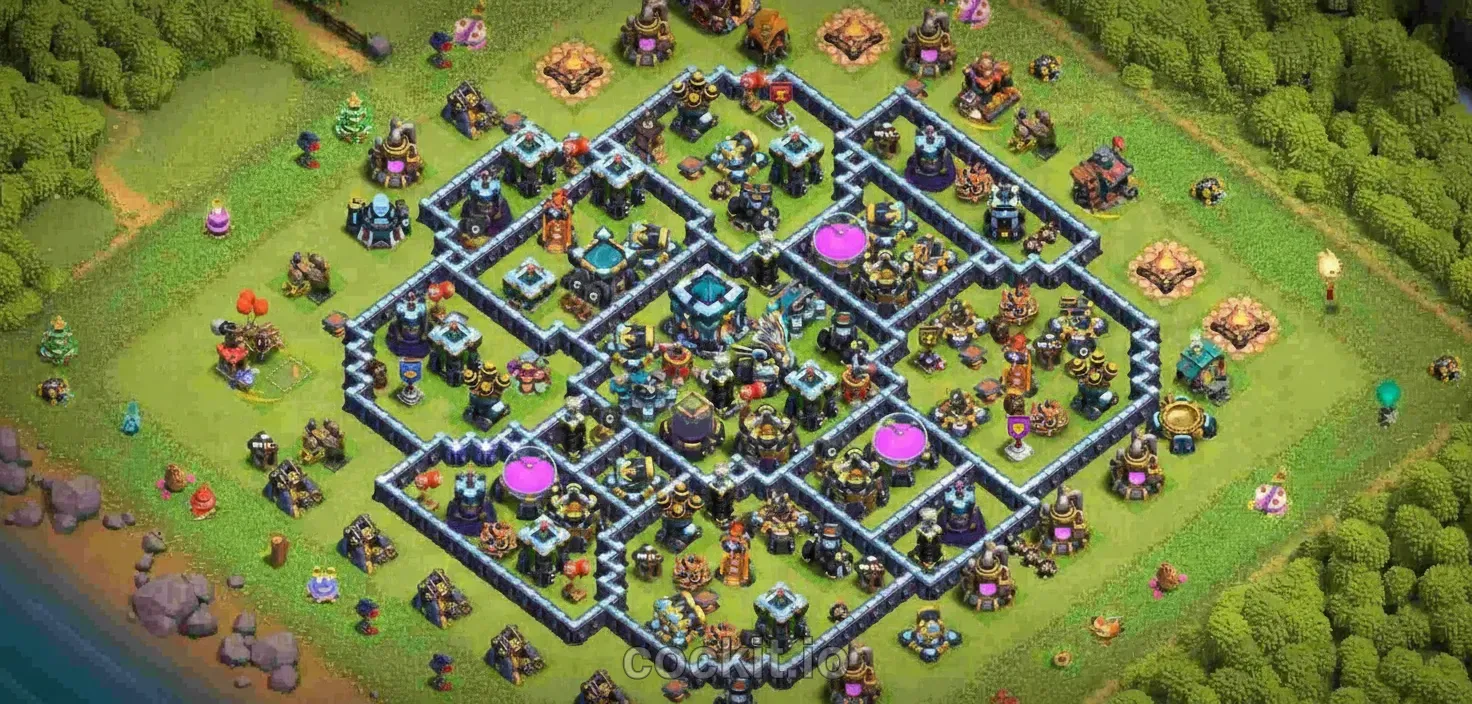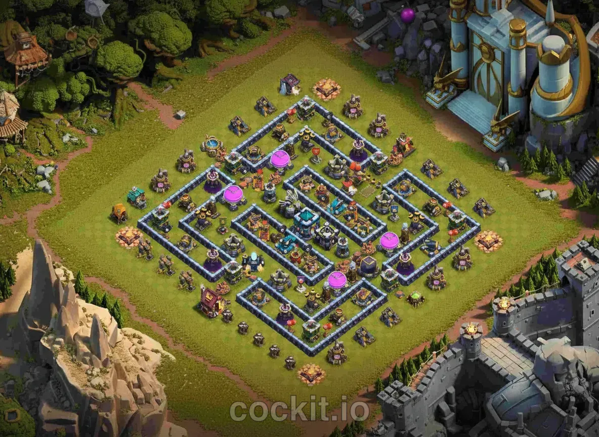 TH13 is one of the most scrutinized Town Hall tiers in the current meta. A good TH13 base layout must cover air, ground, spam and hero-cycle attacks while protecting the storages that matter most at your progression stage. The list below ranks the community's top TH13 bases by rating and copy count.