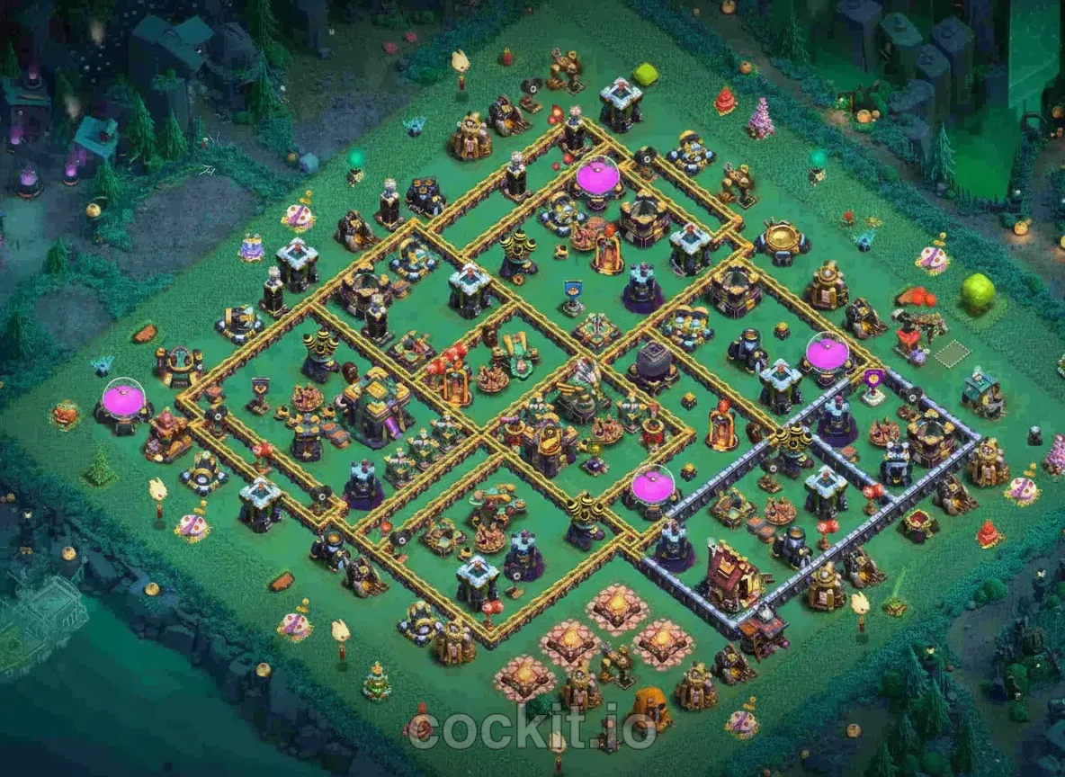 TH14 is one of the most scrutinized Town Hall tiers in the current meta. A good TH14 base layout must cover air, ground, spam and hero-cycle attacks while protecting the storages that matter most at your progression stage. The list below ranks the community's top TH14 bases by rating and copy count.