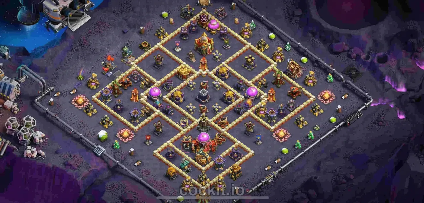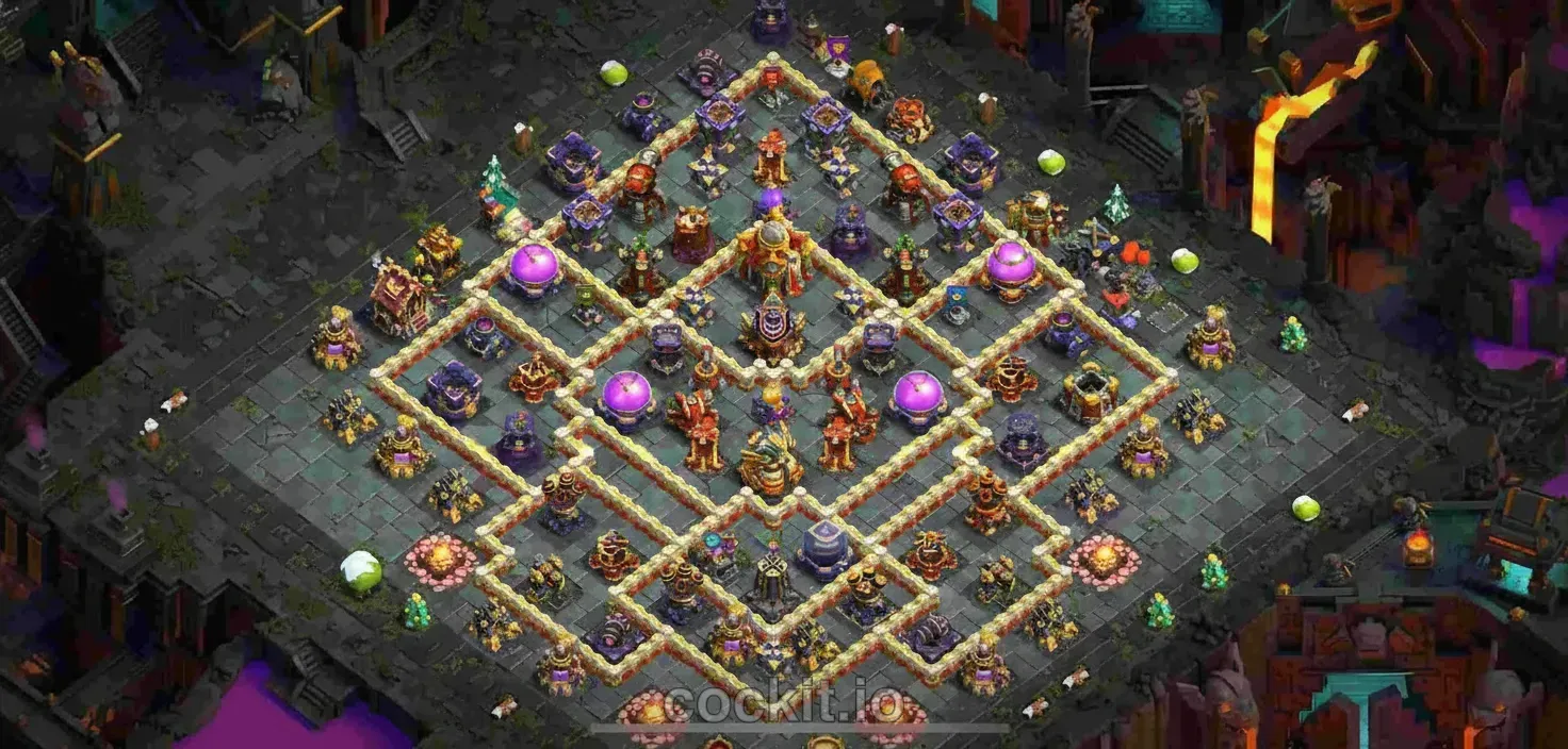 Hybrid bases at TH16 combine farming and trophy logic — protect storages AND the Town Hall simultaneously. They are the most-copied layout type because they work in both legend league and normal ladder play.