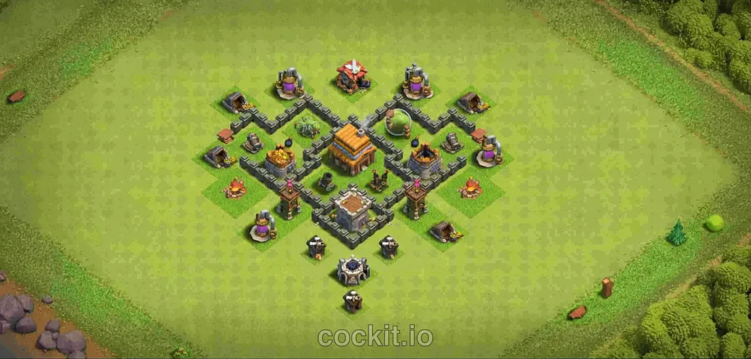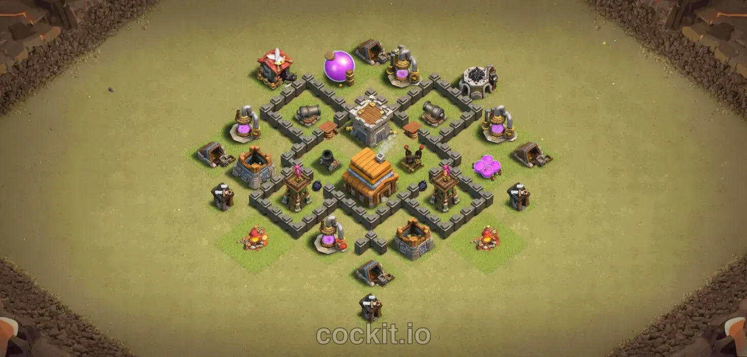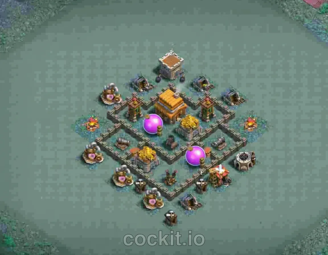 TH4 is one of the most scrutinized Town Hall tiers in the current meta. A good TH4 base layout must cover air, ground, spam and hero-cycle attacks while protecting the storages that matter most at your progression stage. The list below ranks the community's top TH4 bases by rating and copy count.