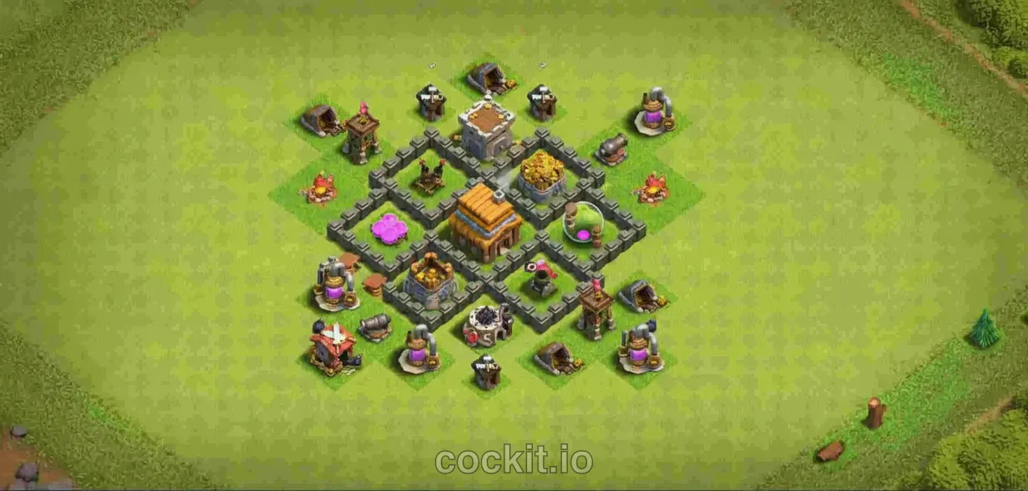TH4 is one of the most scrutinized Town Hall tiers in the current meta. A good TH4 base layout must cover air, ground, spam and hero-cycle attacks while protecting the storages that matter most at your progression stage. The list below ranks the community's top TH4 bases by rating and copy count.