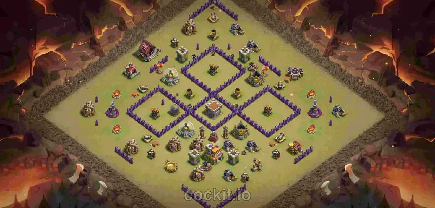 War#216TH7 War layouts are designed to counter the current TH7 attack meta. This base targets level 7 play and leans toward War strategy, balancing defensive priorities with resource protection.
