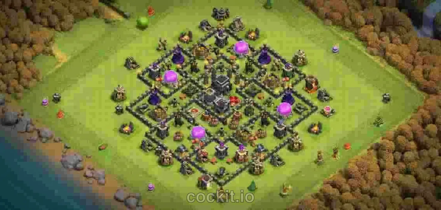 War#218TH9 War layouts are designed to counter the current TH9 attack meta. This base targets level 9 play and leans toward War strategy, balancing defensive priorities with resource protection.